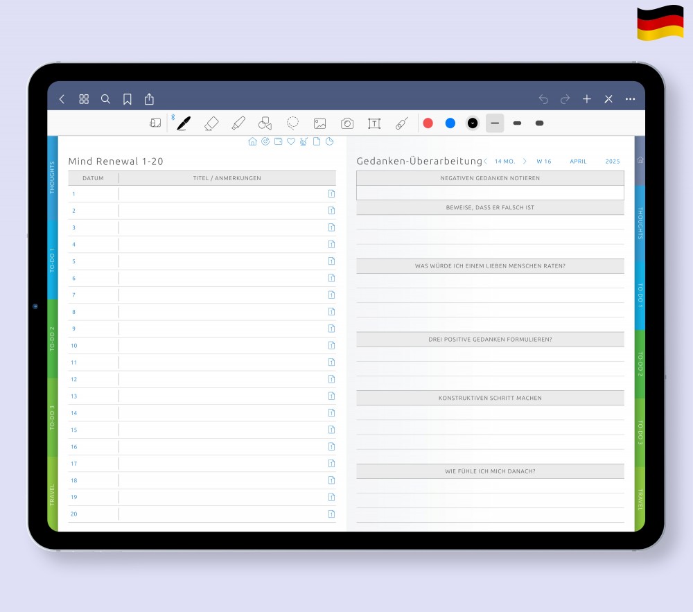 🎨 Individuelle Bereiche & Tabs Entdecken Sie vielfältige Gestaltungsmöglichkeiten – von Mindset-Techniken und praktischen Checklisten bis hin zu kreativen Bereichen für Kochideen und vieles mehr.