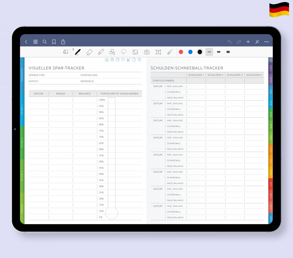 💰 Ihre Finanzen im Griff Behalten Sie den Überblick über Ihr Budget mit klaren Vorlagen für Ausgaben, Ersparnisse und Schuldenmanagement – alles übersichtlich im Finanzbereich gebündelt.