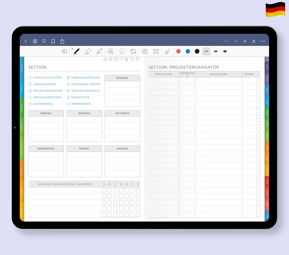 👶 Verbessern Sie die Schulerfahrung Ihrer Kinder: Behalten Sie schulische Ereignisse, Hausaufgaben und Lektüren mit maßgeschneiderten Vorlagen im Griff. Passen Sie Abschnitte an die Bedürfnisse Ihrer Familie an, vergeben Sie individuelle Namen und reduzieren Sie so Schulstress.