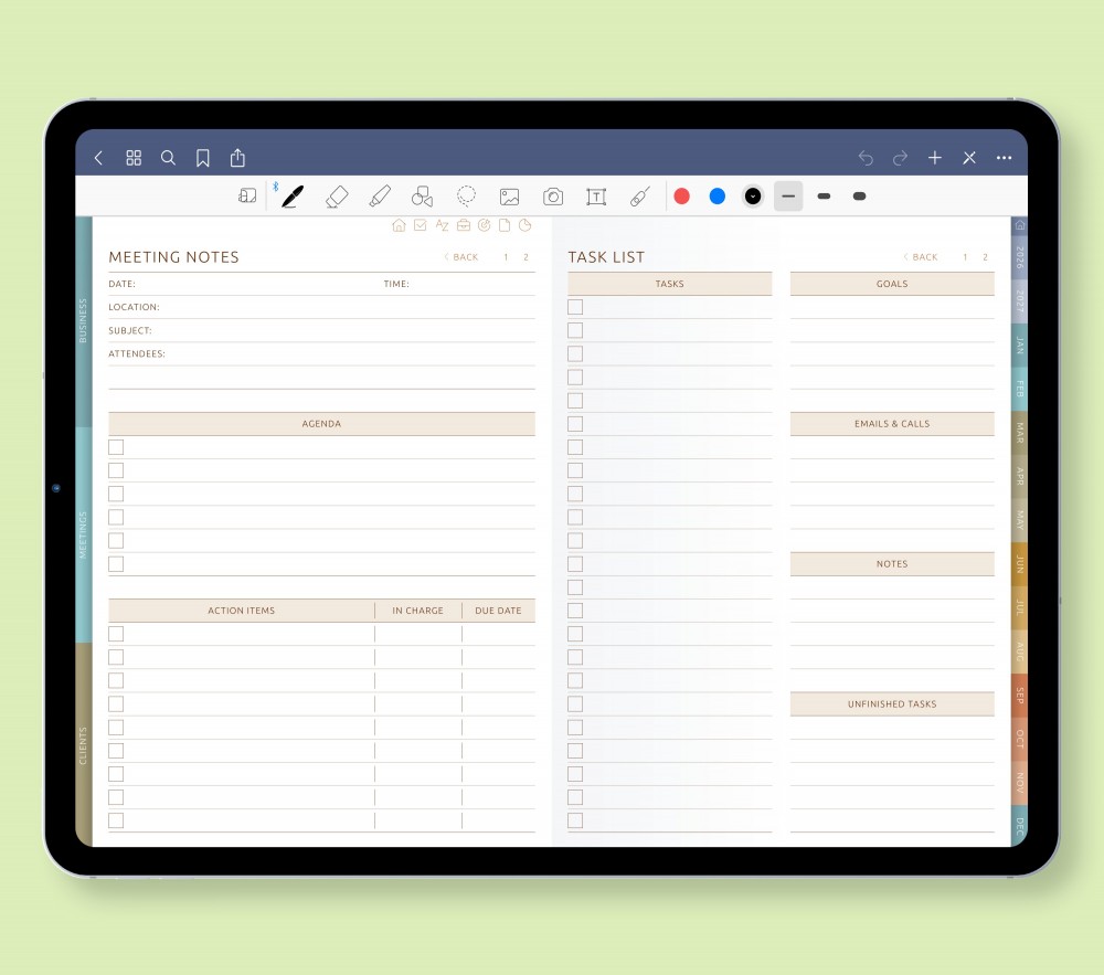 The Client Record Book brings all your client data, appointments, tasks and projects into one neat, digital hub — ideal for coaches, therapists, freelancers, beauty experts, consultants, and anyone working with clients. Compatible with iPad, Android tablets, and popular note‑taking apps, it’s designed to keep your business organized and efficient.