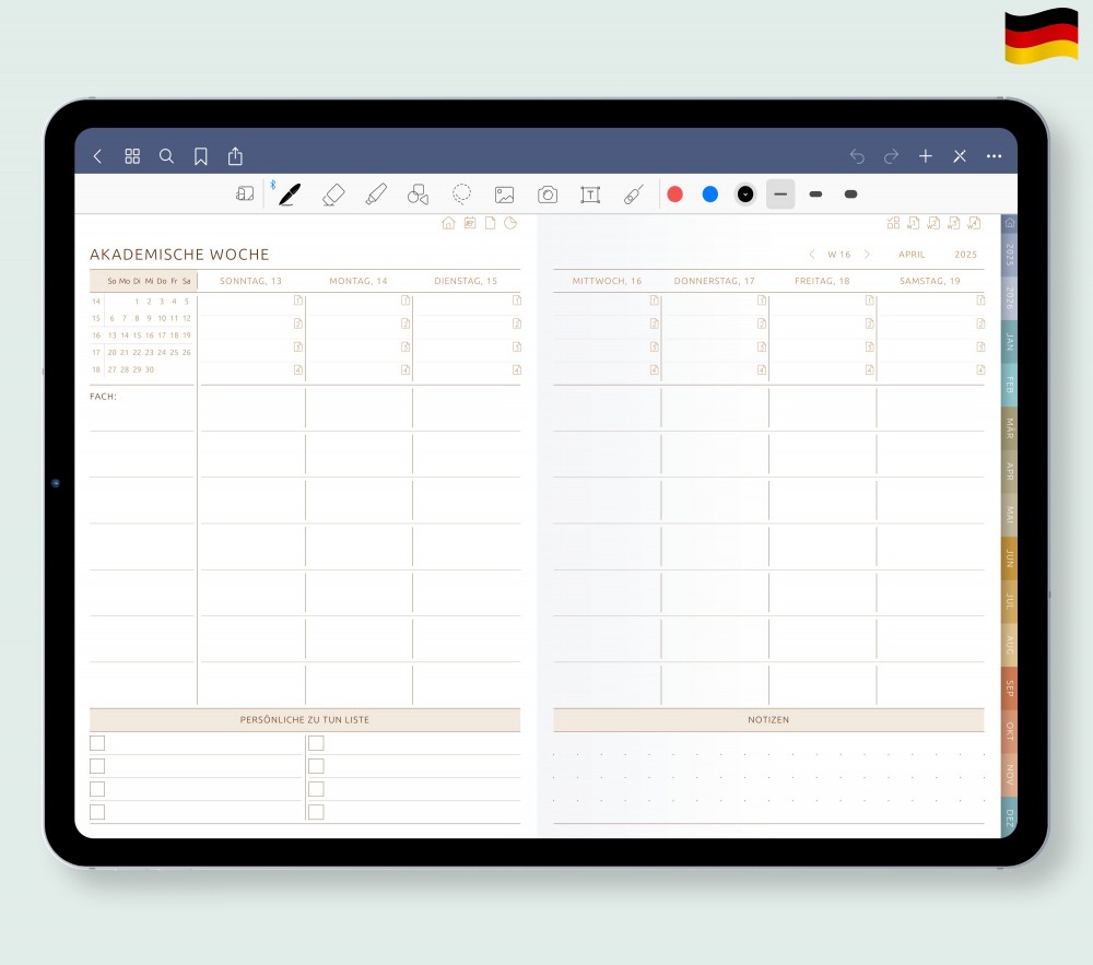 Bleiben Sie über alle Fächer und Stundenpläne hinweg organisiert – mit einem übersichtlichen 4-seitigen Wochenabschnitt, speziell für Lehrkräfte entwickelt. Planen Sie Ihren Unterricht, setzen Sie Prioritäten und verwalten Sie mehrere Klassen mit Leichtigkeit. Wählen Sie aus mehr als 60 Layouts oder nutzen Sie das Standard-Setup, um Ihre Woche optimal zu gestalten.