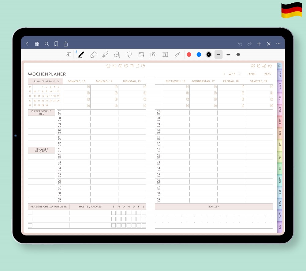 ✨ Bereit, smarter statt härter zu planen? Verändern Sie Ihre Art zu organisieren. Tauchen Sie ein in den digitalen Wochenplaner und gestalten Sie Ihr Leben mit Klarheit und Intention.