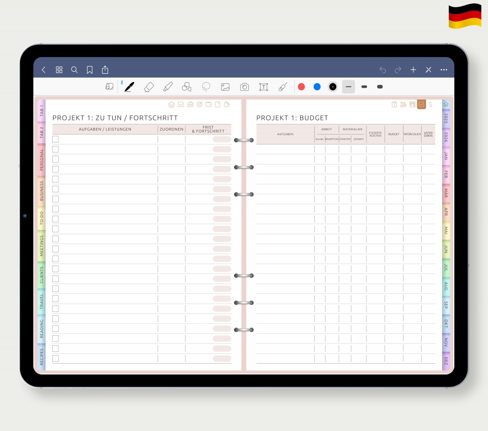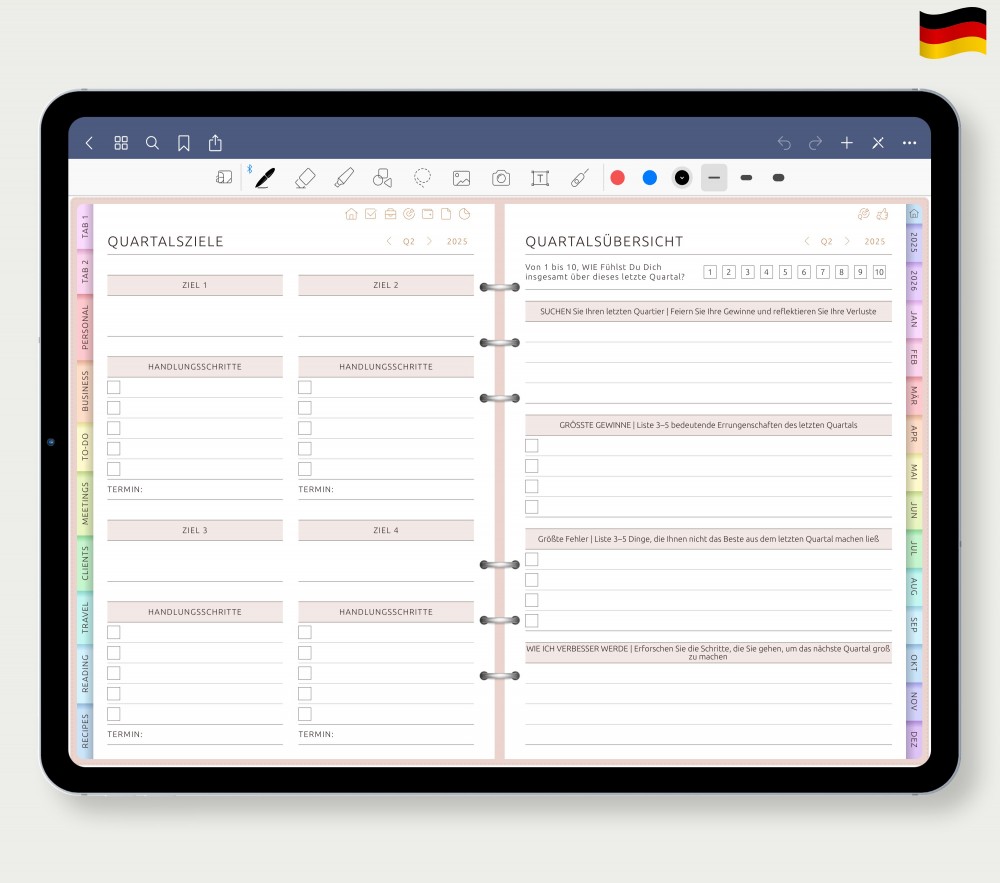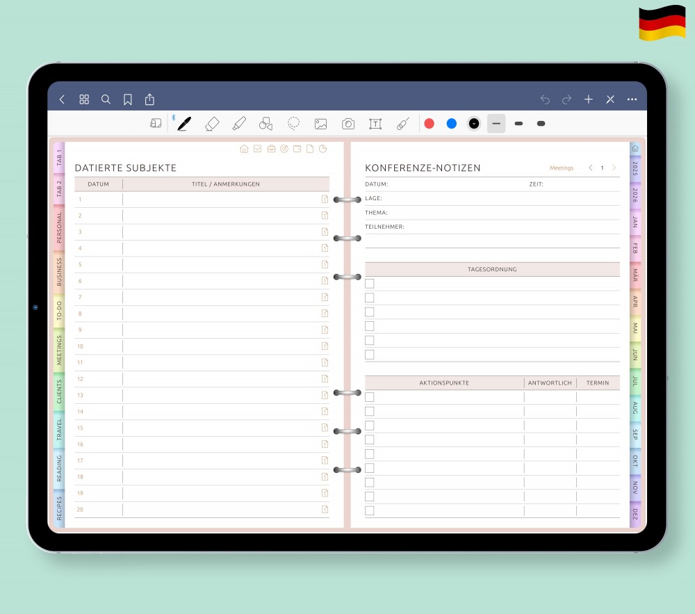 📚 Vollständig anpassbar, grenzenlos vielseitig. Gestalten Sie Ihren Planer nach Ihren Bedürfnissen: ob geschäftliche Aufgaben, Kundennotizen, Meetings, persönliche Listen oder sogar Leseziele. Alles lässt sich individuell abbilden.