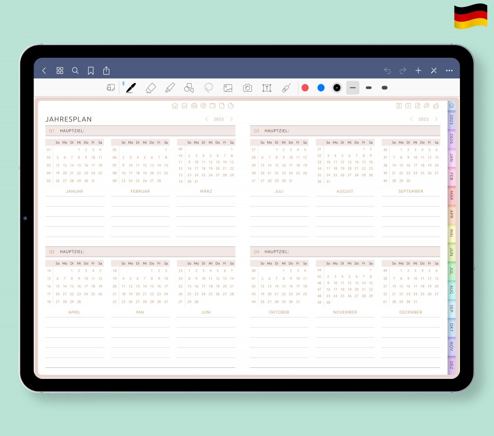 🎯 Ein Jahr voller Bedeutung. Setzen Sie Jahresziele, entwickeln Sie Pläne und behalten Sie Fortschritte im Blick, mit speziellen Seiten für Tracking, Reflexion und Organisation.